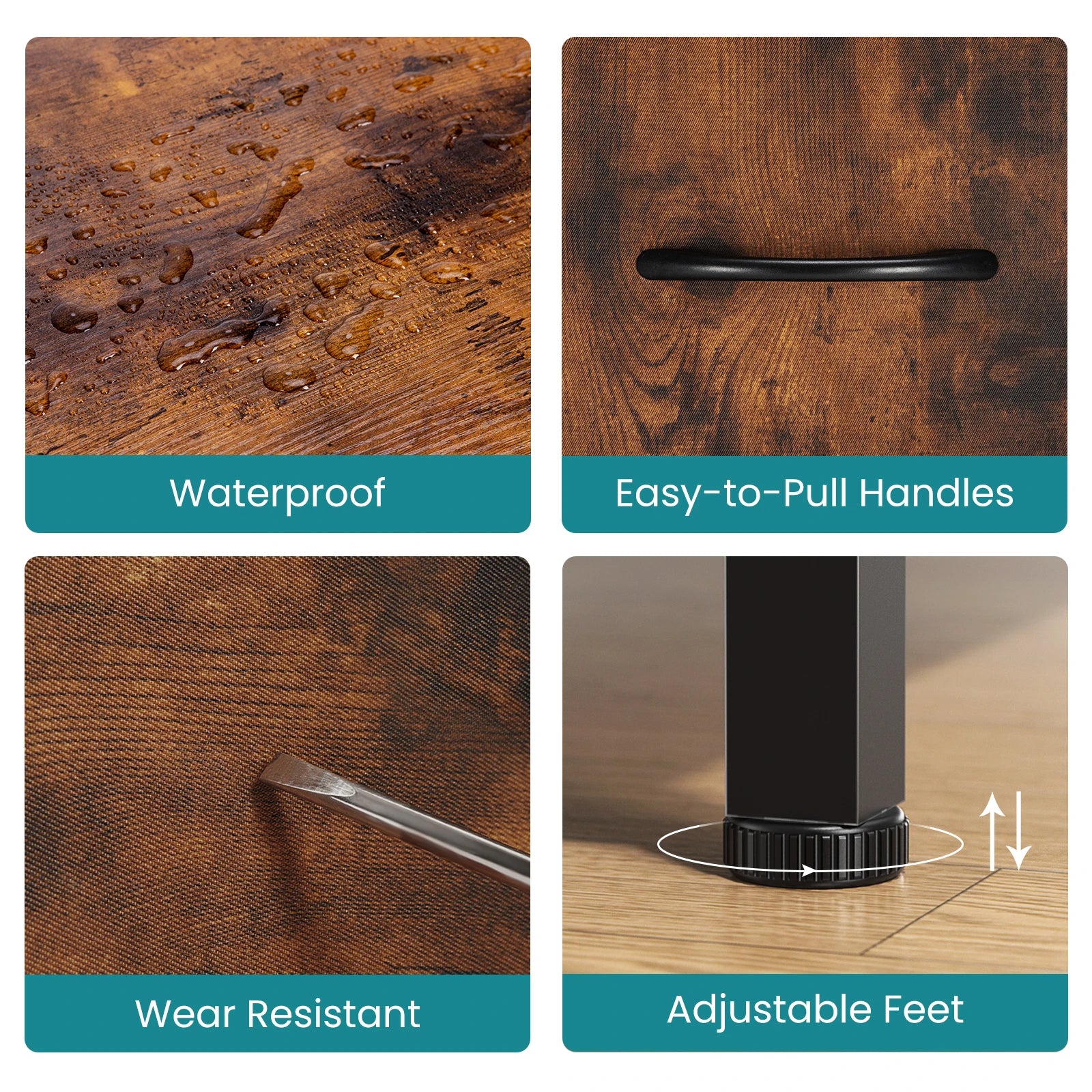 【Quality Construction】This drawer combines MDF boards with steel frames, cross support bars, and a drawer support shelf to make it sturdy under full load(66lb). Anti-tipping accessories are also equipped to prevent accidents. With 4 adjustable feet, you won’t worry about stability even on uneven floors, and it is also adaptable to different spaces.